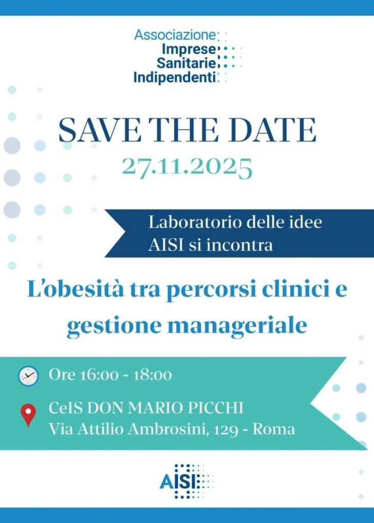 ROMA, 29 NOVEMBRE 2025 – La terza edizione del Laboratorio delle Idee – AISI si incontra, svoltasi il 27 novembre presso il CeIS Don Mario Picchi, ha riunito circa cento rappresentanti delle imprese sanitarie indipendenti, clinici, psicologi, esperti di qualità e stakeholder istituzionali. L’obesità – oggi riconosciuta come malattia cronica – è stata affrontata nelle sue dimensioni cliniche, psicoterapeutiche e organizzative, ma l’evento ha soprattutto messo a fuoco le sfide normative che nel biennio 2025/2026 stanno ridefinendo operatività, responsabilità e sostenibilità delle strutture sanitarie.