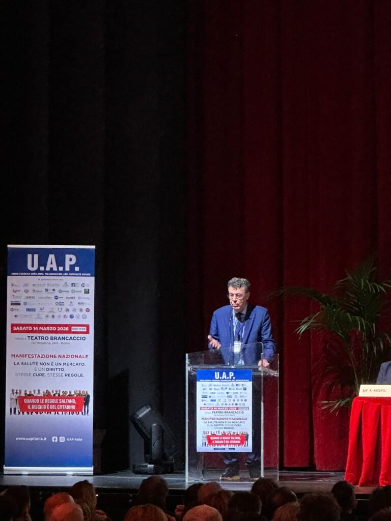 ROMA 16 MARZO 2026 – L’UAP, Unione Nazionale Ambulatori, Poliambulatori, Enti e Ospedalità Privata ha scelto il Teatro Brancaccio di Roma per la propria annunciata manifestazione nazionale, una mobilitazione, quella di sabato 14 marzo, che ha riportato al centro del confronto pubblico il tema dell’unificazione delle tariffe per le prestazioni sanitarie e della necessità di garantire regole uniformi nel sistema sanitario italiano.