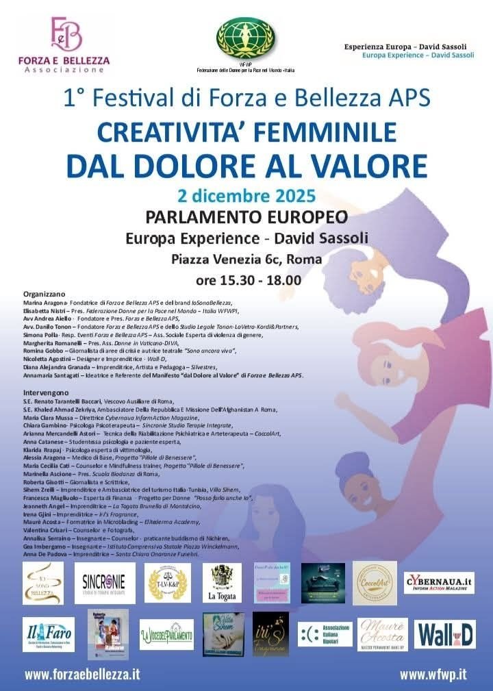 1° Festival della Creatività Femminile ideato da Forza e Bellezza APS - 2 dicembre 2025, ore 15.30-18.00 Parlamento Europeo, Europa Experience – David Sassoli, Piazza Venezia 6c, Roma