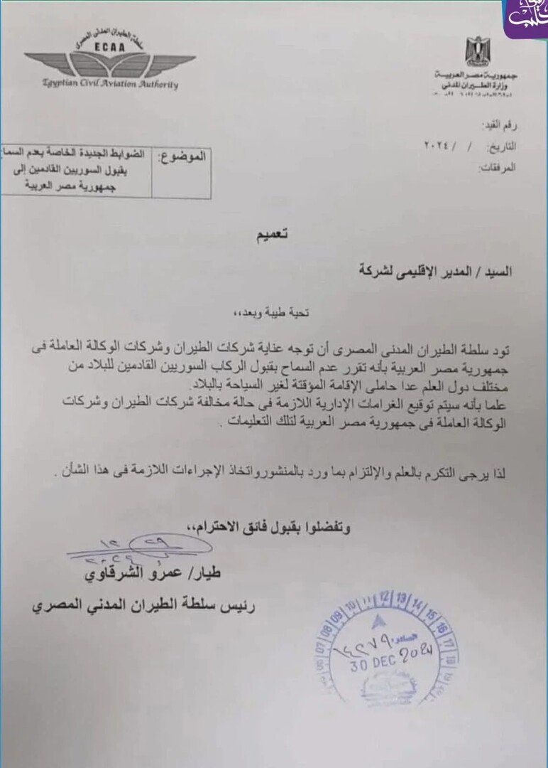 Parallelamente alle dichiarazioni ufficiali, sui social media e attraverso fonti legate ad agenzie di viaggio è circolata una presunta circolare che annuncerebbe una decisione egiziana di impedire l’ingresso ai cittadini siriani provenienti da Siria, Libano, Iraq e Giordania. La misura, secondo le informazioni diffuse, sarebbe valida “fino a nuovo avviso”. Le stesse fonti precisano che la decisione non riguarderebbe i siriani già titolari di permessi di soggiorno egiziani, e che la data ultima consentita per l’ingresso sarebbe stata fissata a venerdì 6 febbraio 2026. Resta tuttavia da chiarire se si tratti di una misura temporanea, di un aggiornamento procedurale o di un vero cambio di politica migratoria.