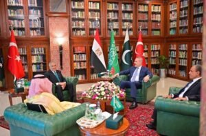 All’incontro hanno preso parte Muhammad Ishaq Dar, vice primo ministro e ministro degli Esteri pakistano, Hakan Fidan, capo della diplomazia turca, e il principe Faisal bin Farhan, ministro degli Esteri saudita.