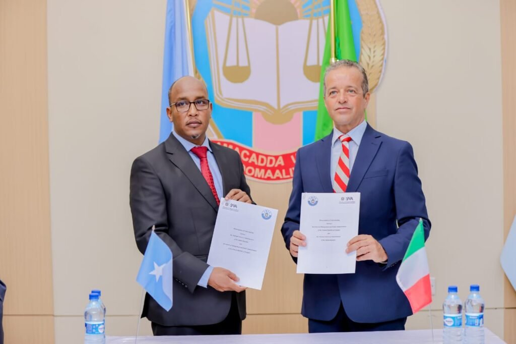 Alla presenza dell’Ambasciatore d’Italia presso la Repubblica Federale di Somalia, Pier Mario Daccò Coppi, del Vice Ministro degli Affari Esteri della Somalia, Hassan Mohamed Ali, del Rettore dell’Università Nazionale Somala, Mohamed Mohamud Mohamed, e del Direttore della SMPA, Bashir Isse, si è tenuta la cerimonia della firma del Protocollo di Intesa fra la Scuola Nazionale di Amministrazione (SNA) dell’Italia e la School of Management and Public Administration (SMPA), istituzione incardinata nell’Università Nazionale Somala.