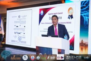 Il programma della prima giornata ha incluso sessioni scientifiche avanzate e workshop specializzati, insieme a trasmissioni in diretta di diversi casi di cateterizzazione cerebrale da centri medici egiziani, nell’ambito dello scambio di competenze e della revisione delle più recenti tecniche di trattamento.