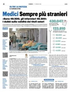 Secondo le stime dell’Amsi (Associazione dei medici stranieri in Italia), i professionisti della sanità che arrivano dall’estero nel 65% dei casi non hanno la cittadinanza italiana e quindi non possono accedere ai concorsi