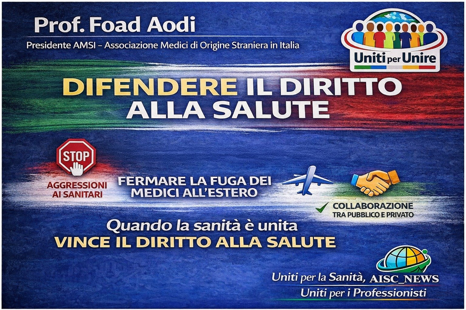 Su questi temi interviene il Prof. Foad Aodi, medico fisiatra, giornalista e divulgatore scientifico internazionale, esperto in salute globale, membro del Registro Esperti FNOMCeO e docente dell’Università di Tor Vergata, presidente AMSI, fondatore del Movimento Internazionale Uniti per Unire e direttore responsabile di AISC News.