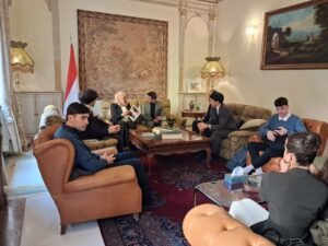 Questa mattina si è tenuto presso l’Ambasciata dello Yemen a Roma un incontro, caratterizzato da uno spirito di profonda amicizia e significativo dialogo culturale, tra una delegazione di giovani studenti, guidata da Carlo Palombo, giovane leader dell’Associazione Welcome Italy in Italia, e Talal Khreis, fondatore dell’Associazione di Amicizia Italo-Araba.